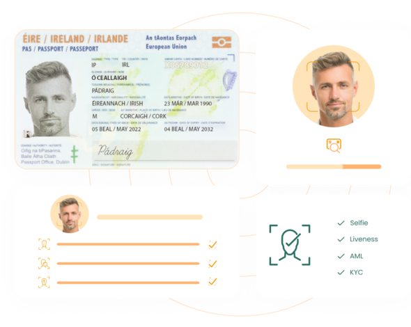 Easily verify identities with our face recognition tools, real-time checks, and government ID validation. Our solution helps you onboard customers faster, prevent online fraud, and make KYC and AML compliance simple.
